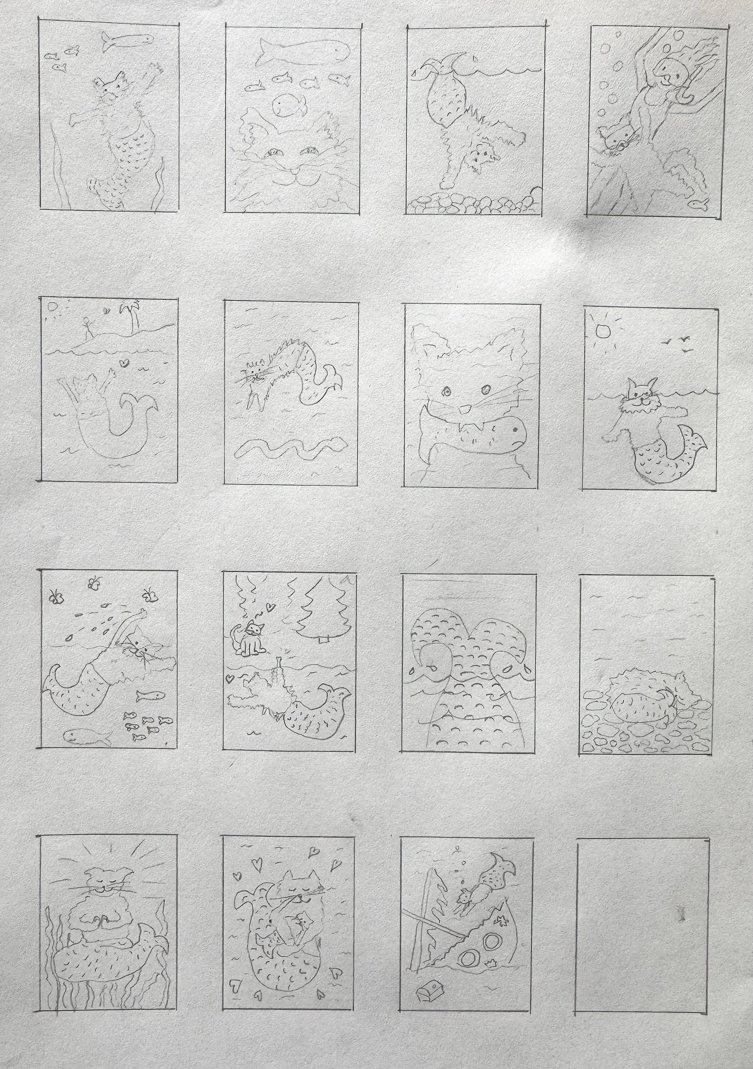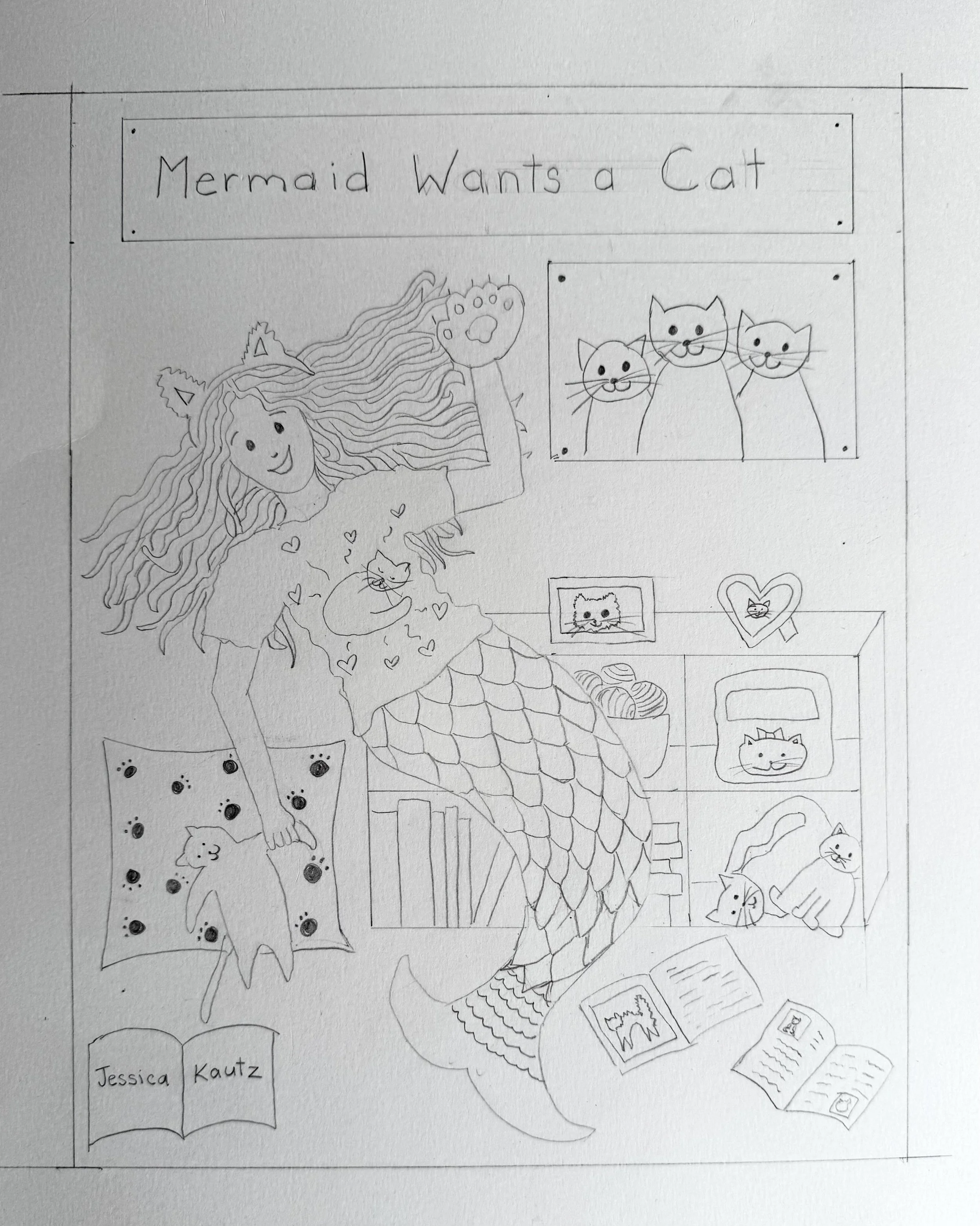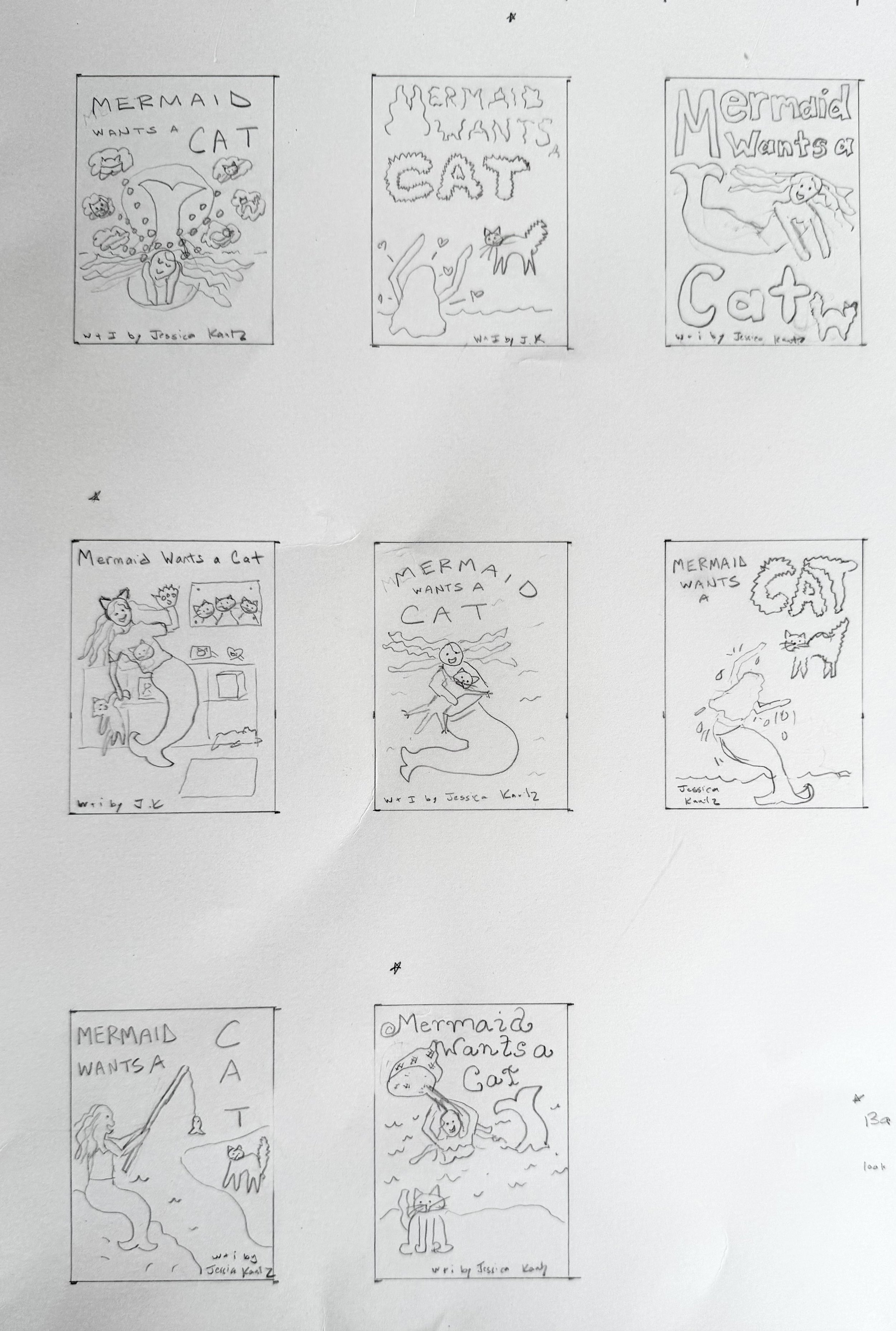 Mermaid Wants a Cat - Cover Thumbnails and Sketches